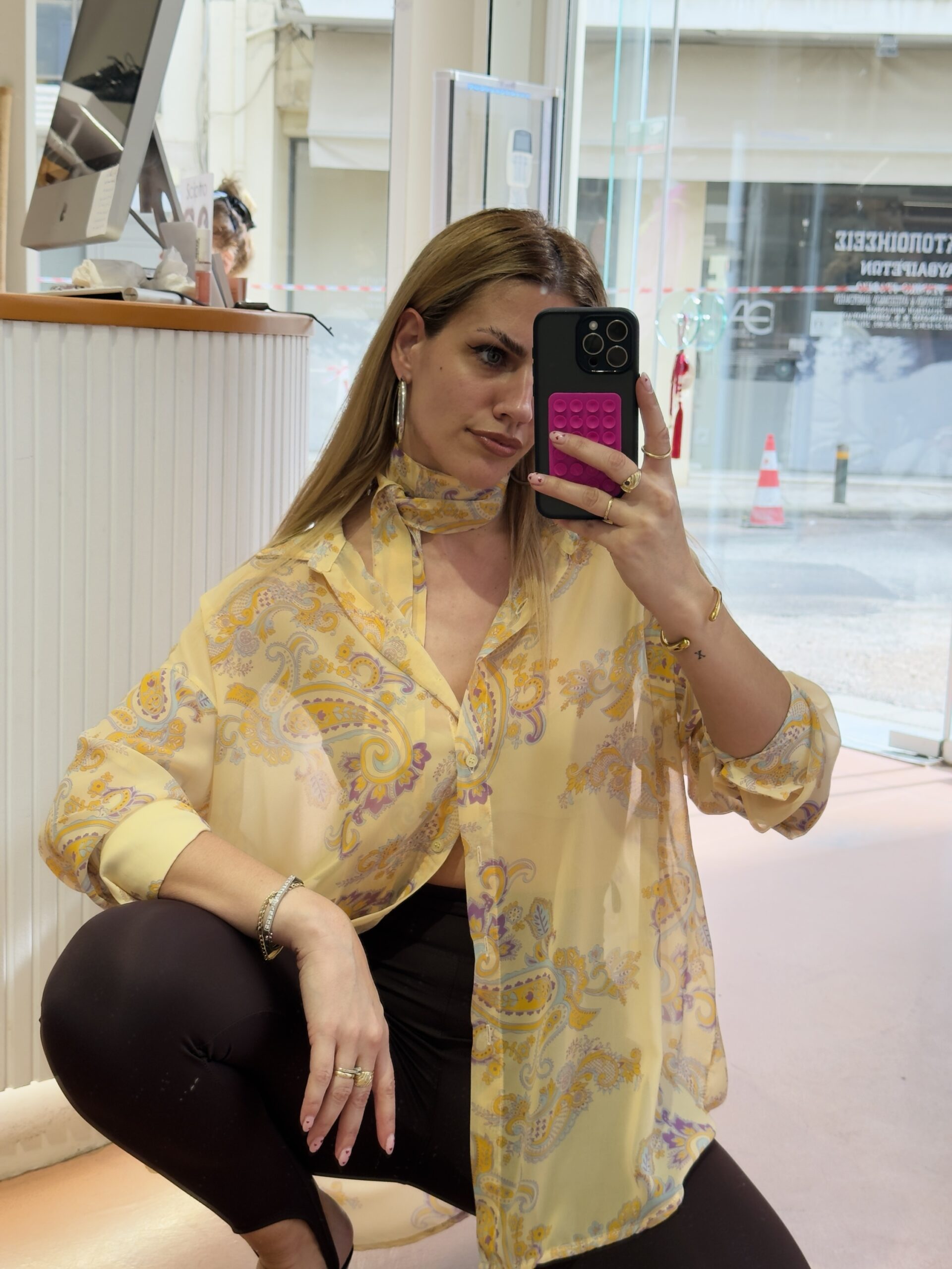 Διαθέτει φαρδιά μανίκια και ρευστή κίνηση που χαρίζει θηλυκότητα και στυλ. Φοριέται είτε κουμπωμένη, είτε ανοιχτή πάνω από top ή bralette για πιο layered look.