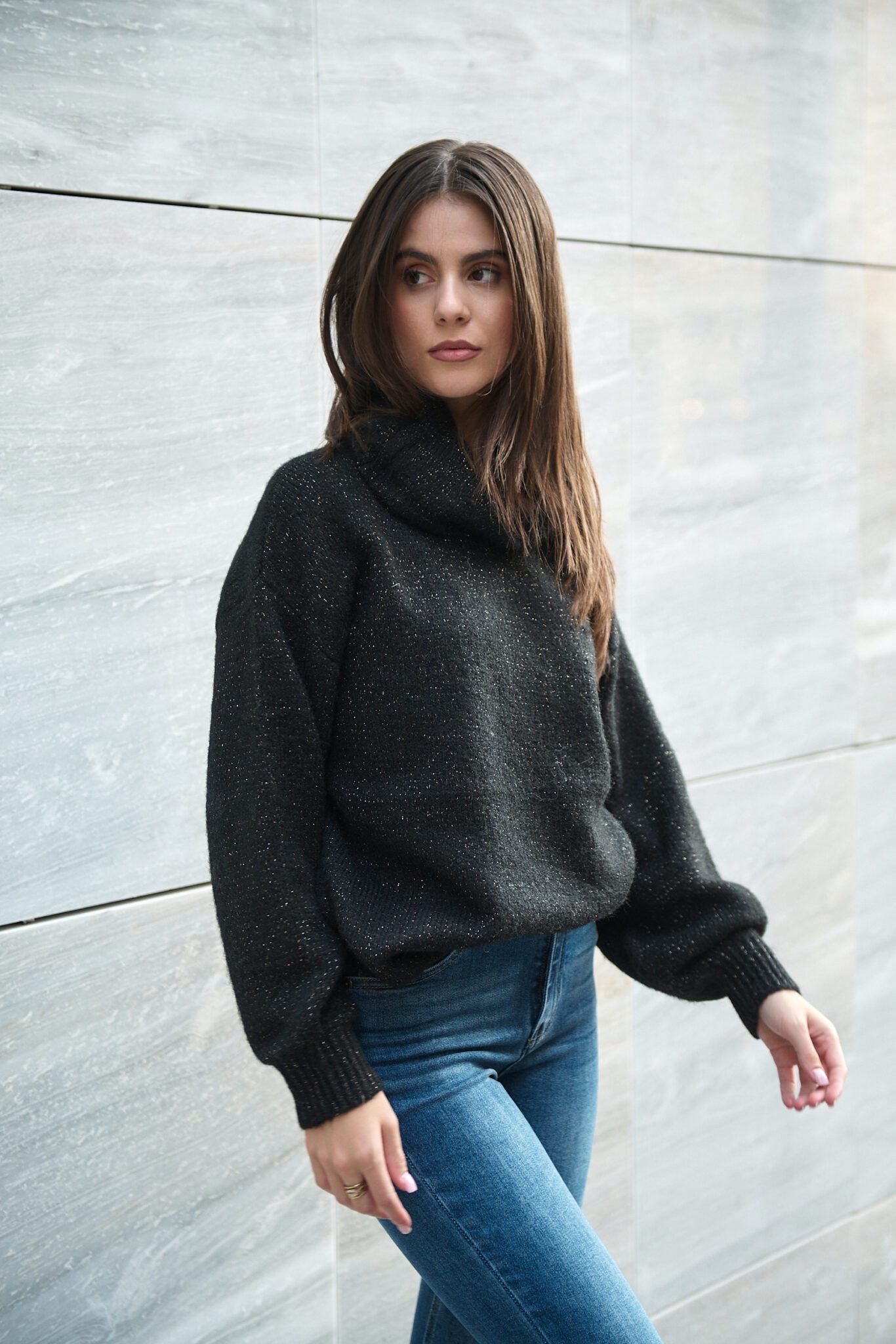 Το Πουλόβερ Λούρες σε μαύρο χρώμα συνδυάζει cozy άνεση με διακριτική κομψότητα. Διαθέτει ζιβάγκο λαιμόκοψη, άνετη εφαρμογή και oversized γραμμή που χαρίζει effortless στυλ σε κάθε περίσταση. Η πλούσια πλέξη του και η απαλή υφή του προσφέρουν ζεστασιά, ενώ το διακριτικό του ύφος το καθιστά ιδανικό για casual ή πιο προσεγμένες εμφανίσεις.