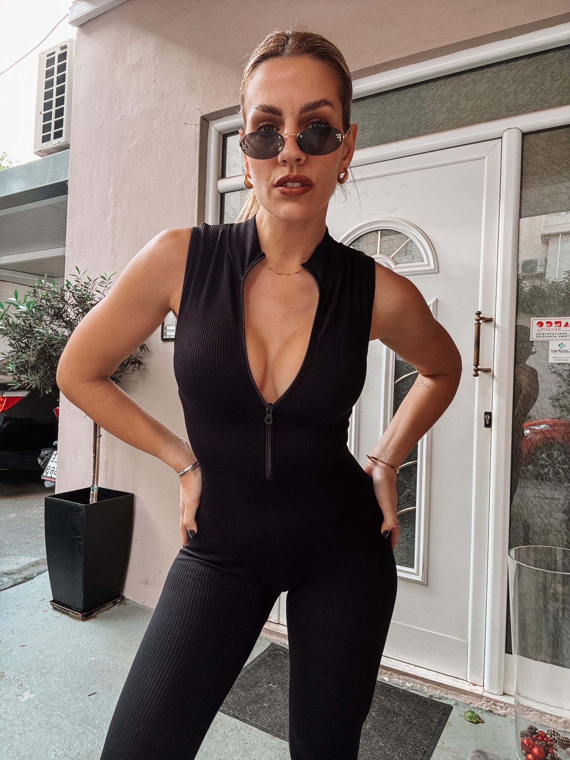 Minimal αλλά εξαιρετικά θηλυκό, το (NINA) είναι το rib sleeveless unitard που δίνει σχήμα και γραμμή στο σώμα χωρίς κόπο. Με ανάλαφρο ζιβάγκο και μπροστινό φερμουάρ για άνοιγμα όσο θες, συνδυάζει athleisure στοιχεία με καθαρό urban style — ιδανικό για styled looks με bomber, oversized jackets ή chunky sneakers.