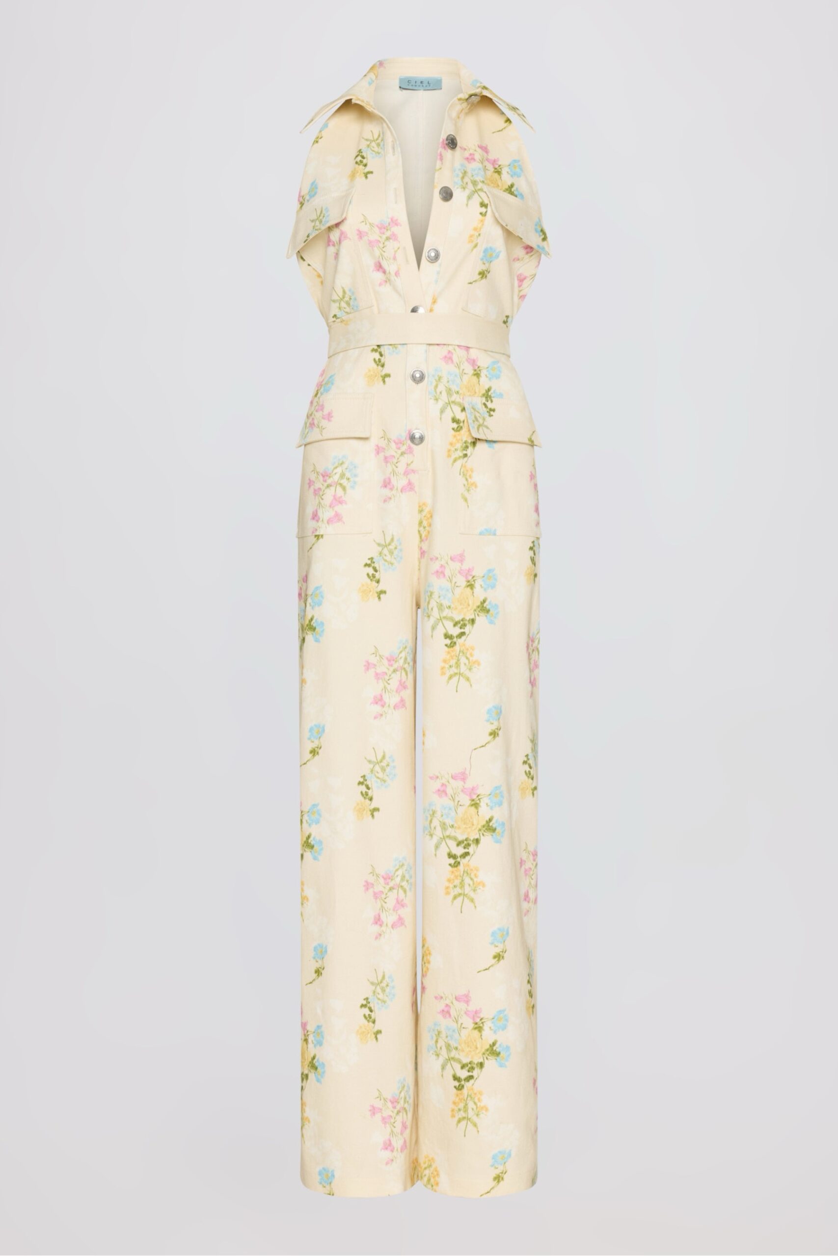 Ολόσωμη φόρμα με ρομαντικό floral print σε απαλή βουτυρένια απόχρωση, ιδανική για chic καθημερινές αλλά και πιο ιδιαίτερες εμφανίσεις. Διαθέτει γιακά πουκαμίσου και κουμπιά στο μπροστινό μέρος, ενώ οι πολλαπλές utility τσέπες δίνουν έναν σύγχρονο, relaxed χαρακτήρα.