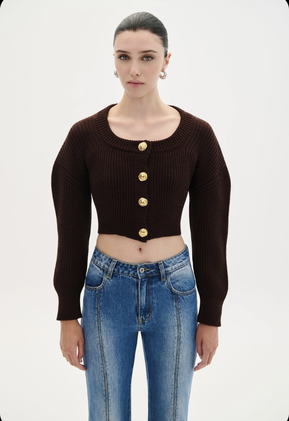 Ανανεώστε τα χειμερινά σας looks με την Cardigan Crop Gold Buttons, ένα κομμάτι που συνδυάζει μοντέρνα γραμμή με διαχρονική κομψότητα.