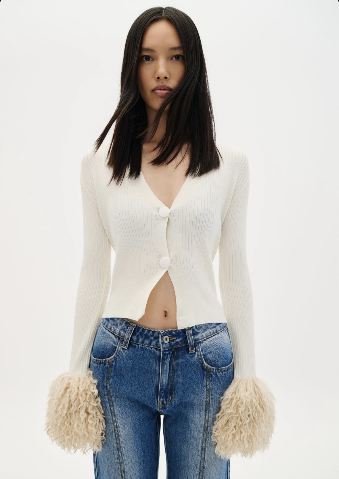 Εφαρμοστό cardigan με V λαιμόκοψη και διαχρονική αισθητική, σχεδιασμένο για να αγκαλιάζει τη σιλουέτα με κομψό τρόπο. Το rib πλεκτό ύφασμα προσφέρει άνεση και τέλεια εφαρμογή, ενώ το κοντό μήκος του το καθιστά ιδανικό για stylish everyday αλλά και πιο elevated εμφανίσεις.