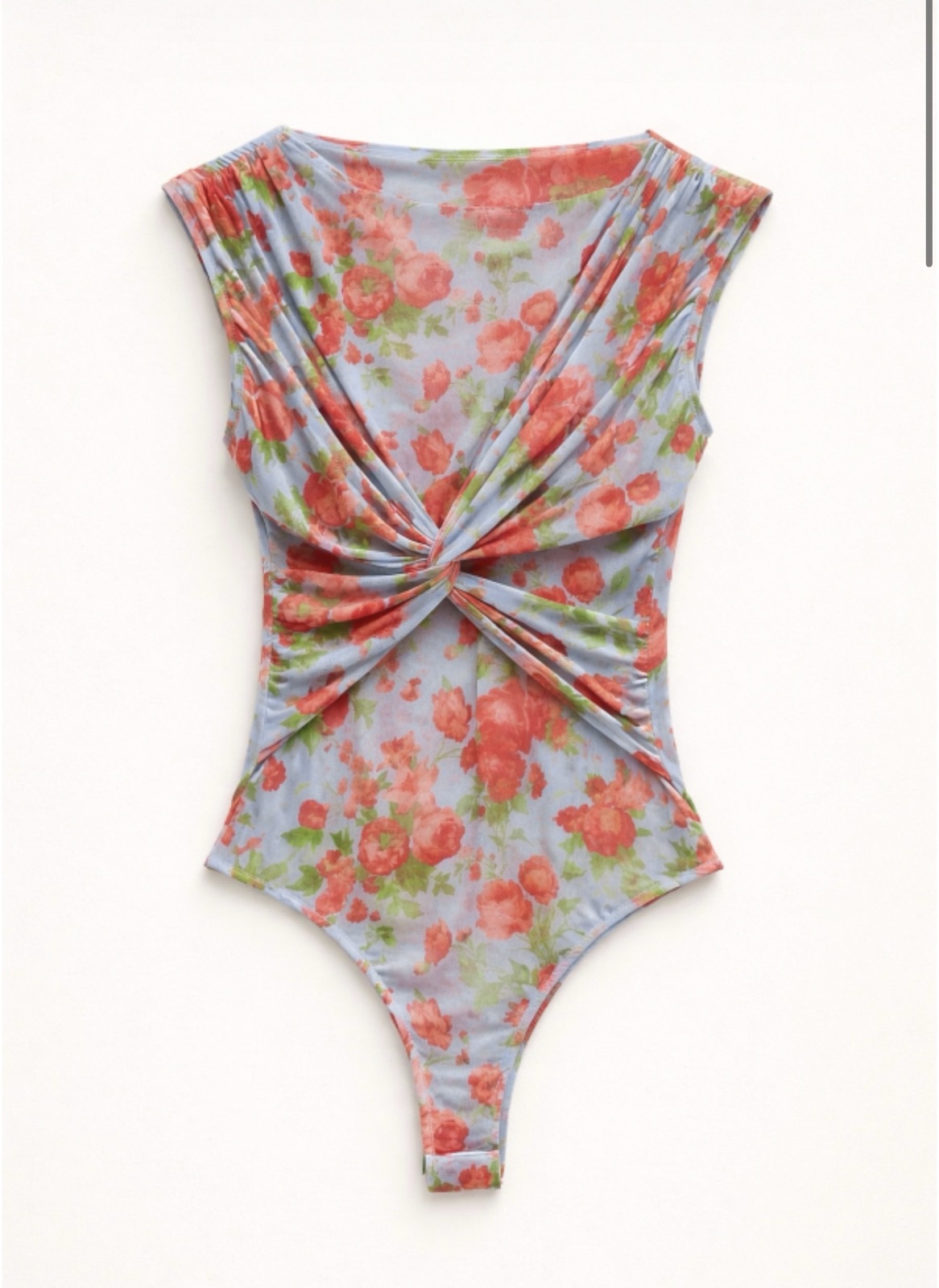 Σε Εντυπωσιακό body από ελαστικό ύφασμα τύπου τούλι με all-over floral print, που αγκαλιάζει το σώμα και αναδεικνύει τη σιλουέτα.